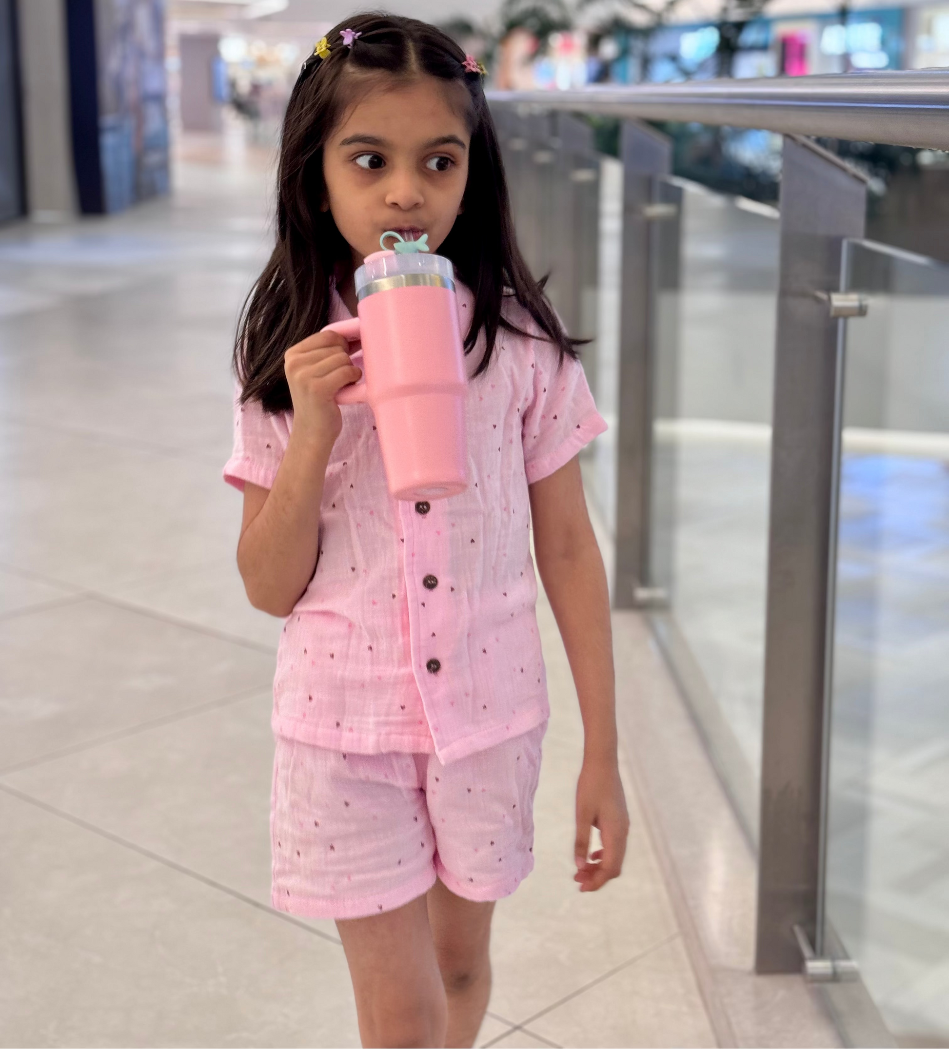 Pink Hearts Muslin Coord Set