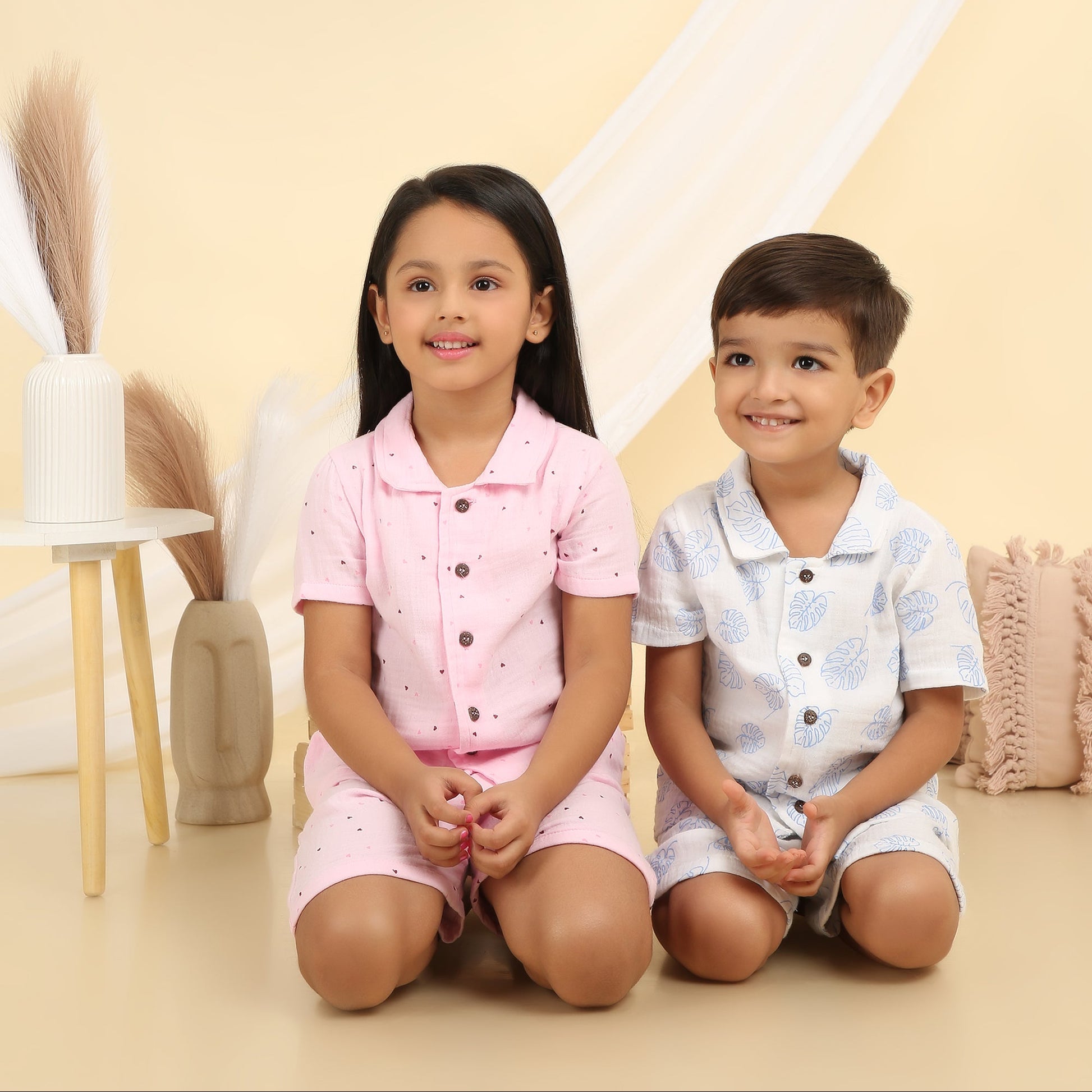 Made from ultra soft Cotton Muslin fabric, these co-ord sets are super lightweight & comfortable. They are breathable & gentle on their soft skin. Designed for all-day comfort, these co-ord sets are stylish and elegant.